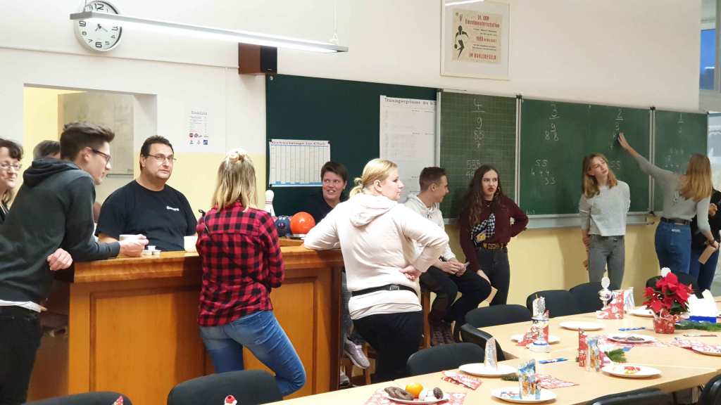 Ab 18.30 Uhr startete dann die Weihnachtsfeier für die Mitglieder ab 16 Jahre. Alt und Jung fanden zu einem gemütlichen Abend bei Speis, Trank und dem Kegelsport zusammen.