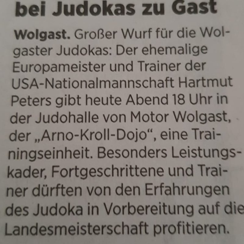 Judoabteilung des SV Motor Wolgast einen besonderen Trainingsauftakt.
