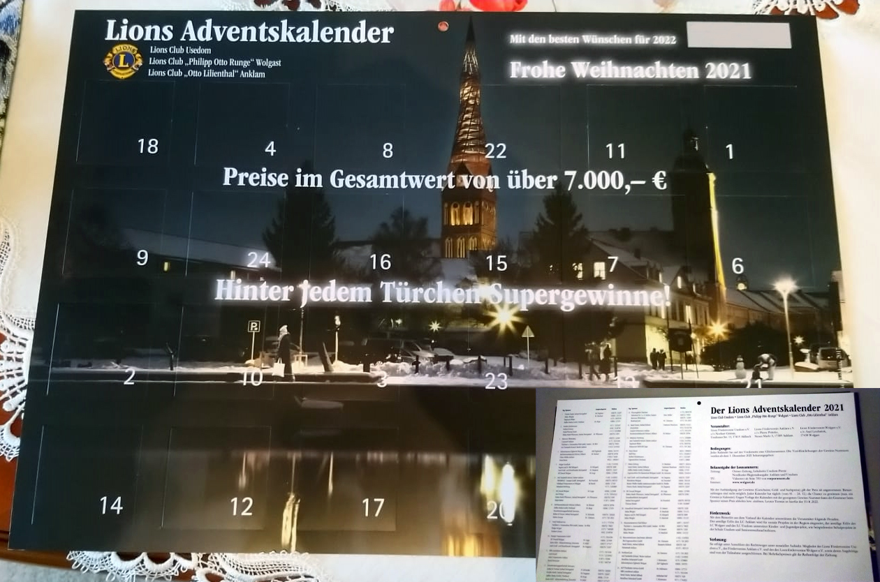 Der Lions Club Wolgast/Usedom/Anklam bietet auch dieses Jahr wieder einen besonderen Adventskalender an.