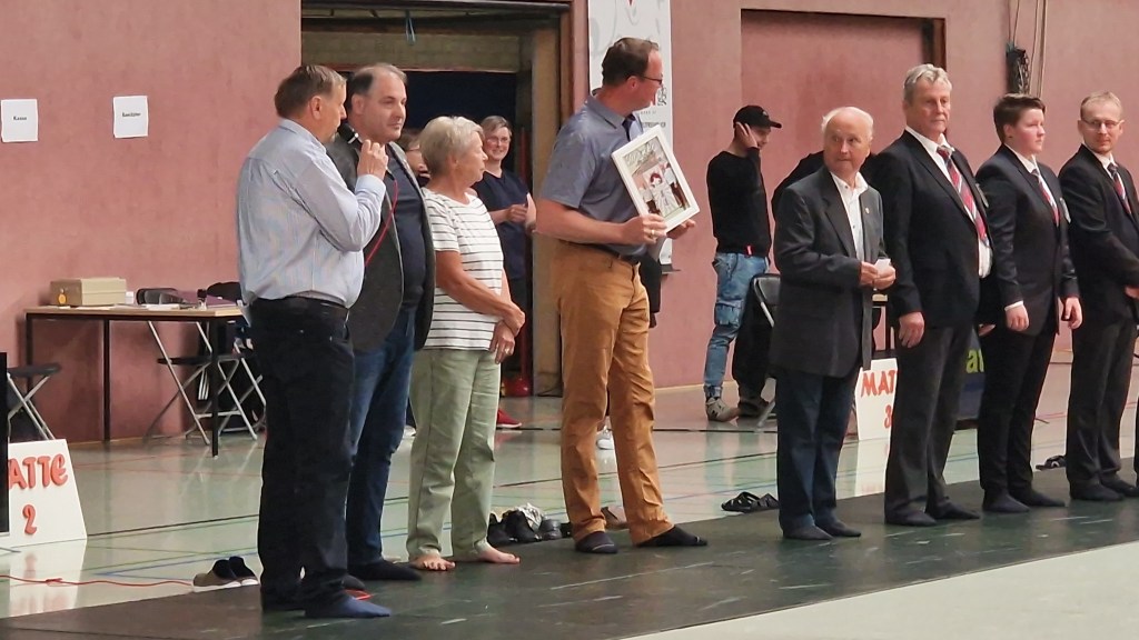 Für Jörn Nehls, schon seit Kindheitstagen dem Judosport verbunden, und heute eine wichtige Säule im Vereinsleben und im Vorstand gab es als Zeichen der Anerkennung die Ehrennadel in Gold.
