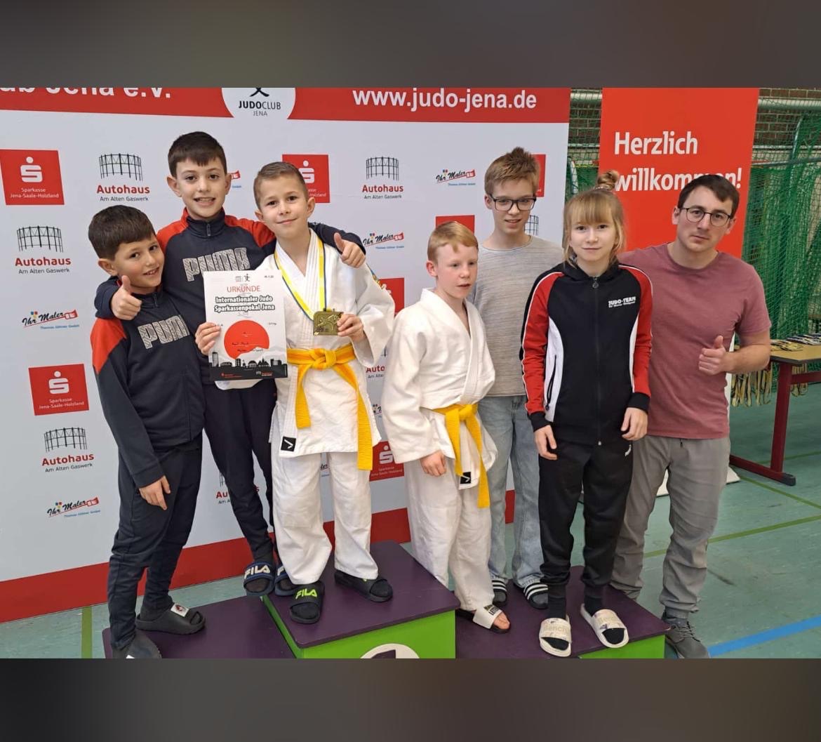 Am Wochenende war unser Verein nach Jena zum 29. Sparkassen Pokaltunier gereist. Es waren 100 Vereine mit etwa 1000 Teilnemer an beiden Tagen vor Ort. Unsere 6 Kämpfer holten 1 mal Gold (Paul), 1 mal Silber (David), und 2 mal Bronze (Pia und Johann). Nils hat 2 Kämpfe gewonnen. Leider konnte er nicht mehr in der Trostrunde aufgrund einer Armverletzung starten. Ein tolles Ergebniss unserer Truppe. Leider fehlten uns Hayk und Bennett die nicht starten konnten. Mein Dank geht an die mitgereisten Eltern sowie an unsere Fahrer Sven Drühl und Pirusa. Ganz besonderer Dank geht an Trainer Nils Patzenhauer, der die Kämpfer hervorragend eingestellt und betreut hat. Es war für mich ein besonderer Wettkampf und hat mir gezeigt das sich der Aufwand, den wir betreiben, lohnt.
