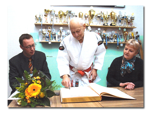 Er war ein ganz Besonderer des Judo-Kampfsports, ein Trainer, bei dem jeder nicht nur das Schwitzen lernte. Er war ein unerbittlicher Judo-Lehrer mit Durchsetzungsvermögen und einer mit einem glücklichen Händchen. Darüber hinaus war „der Alte“ ein Praktiker; einer mit Ideen, aber auch – obwohl er aus dem Brandenburgischen kam – ein pommerscher Querkopf allererster Güte. Und nicht zu vergessen: Unter bestimmten Umständen war mit ihm nicht gut Kirschen essen. Arno Kroll hat in Wolgast Geschichte geschrieben. Auf dem Neujahrsempfang der Stadt Wolgast Anfang Januar 2012 war er ausgezeichnet worden, sich in das Goldene Buch der Stadt Wolgast eintragen zu dürfen. Aus Krankheitsgründen konnte der Senior an diesem Festakt nicht teilnehmen. Im März desselben Jahres wurde es nachgeholt. Nicht im Rathaus, sondern im Sportforum, seinem zweiten Zuhause. Umgeben von dutzenden Pokalen, Medaillen, Fotos und Urkunden, die während seines fast 60-jährigen Wirkens für den Verein Motor Wolgast erkämpft wurden, setzte Arno Kroll seine Unterschrift. Nein, nicht im Anzug. Der damals 83-Jährige empfing Bürgermeister Stefan Weigler und Ratspräsidentin Brigitte Grugel im Kimono, der Kampfkluft der Judokas. Ein rot-weißer Gürtel, der 7. Dan, komplettierte sein Outfit.